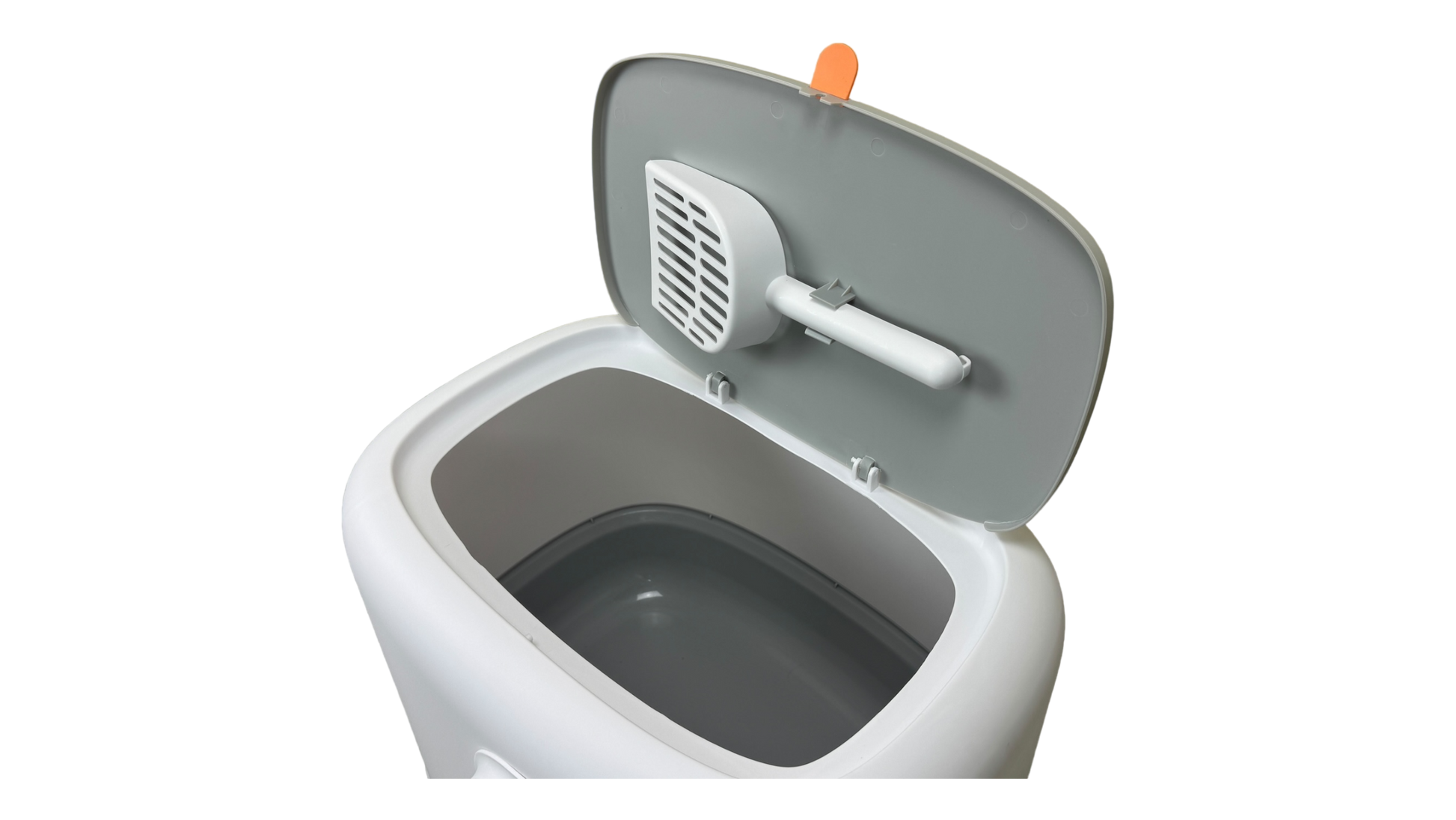 Handige Deksel: Verschoon de bak in een handomdraai door het deksel aan de bovenzijde te openen, met een ingebouwd schepje voor maximaal gemak. Alles wat je nodig hebt, netjes op één plek.