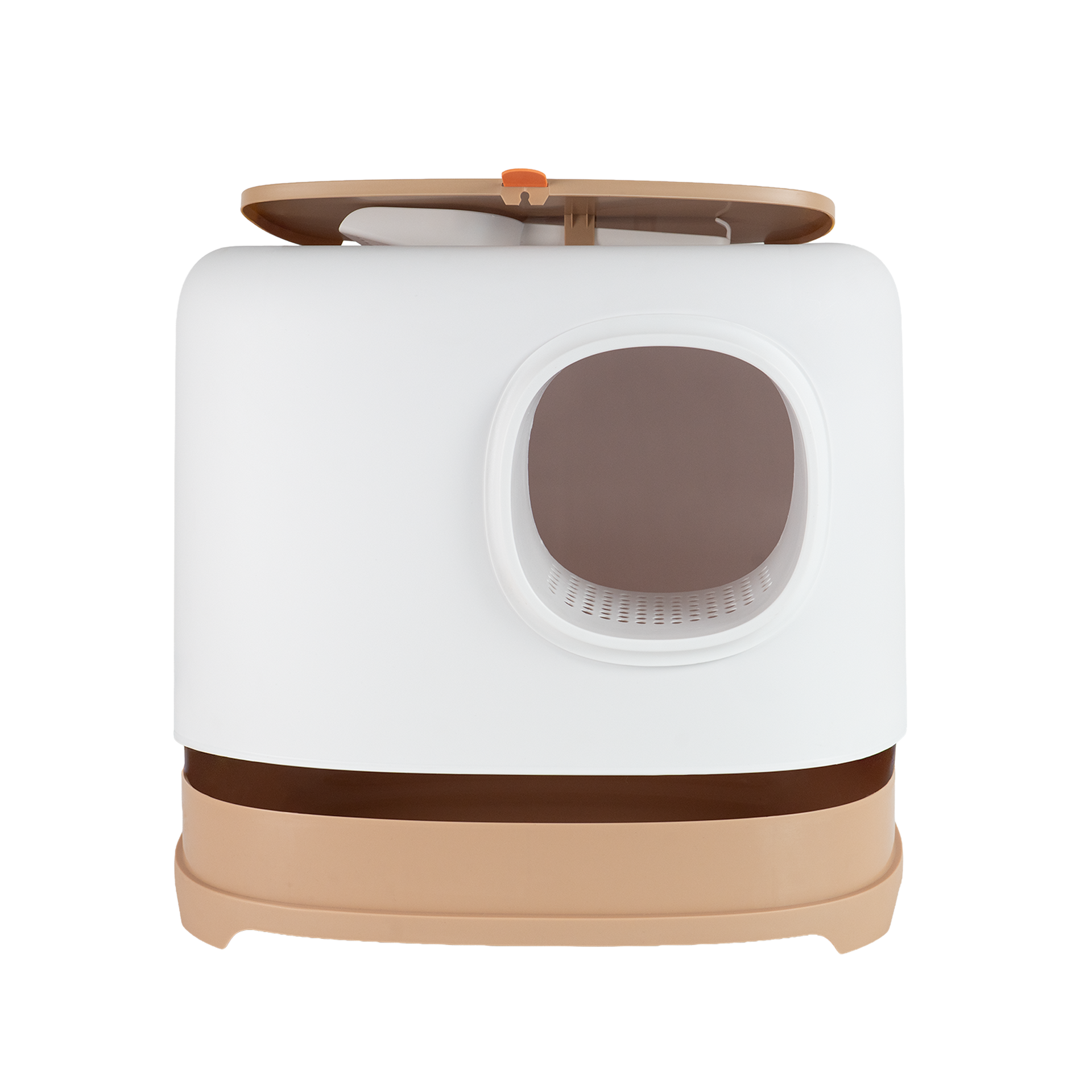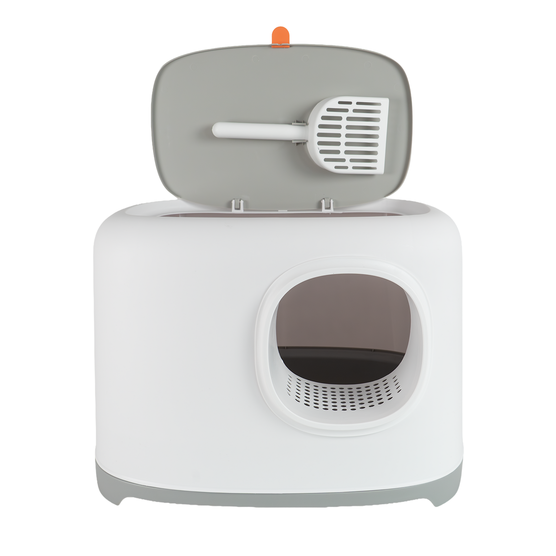 Slim Uitlooprooster: Een ingebouwd plateau vangt losse kattengrit op zodra je kat de bak verlaat, waardoor je huis schoon blijft en het grit op zijn plaats.